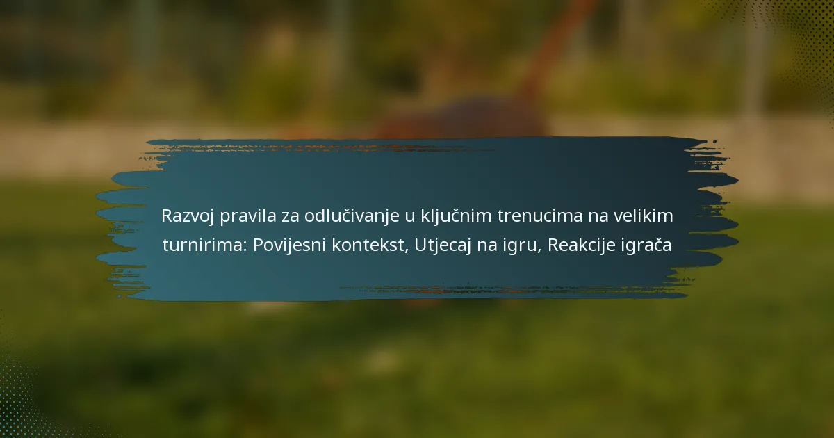 Razvoj pravila za odlučivanje u slučaju izjednačenja na velikim turnirima značajno se razvijao tijekom vremena, s ciljem osiguravanja poštene konkurencije i odlučujućih ishoda. Ova pravila ne samo da odražavaju povijesni kontekst, već također odgovaraju na povratne informacije igrača, utječući na način igre i dinamiku mečeva. Dok neki igrači cijene jasnoću koju ova pravila pružaju, drugi izražavaju zabrinutost zbog njihovog utjecaja na duh igre tijekom kritičnih trenutaka.