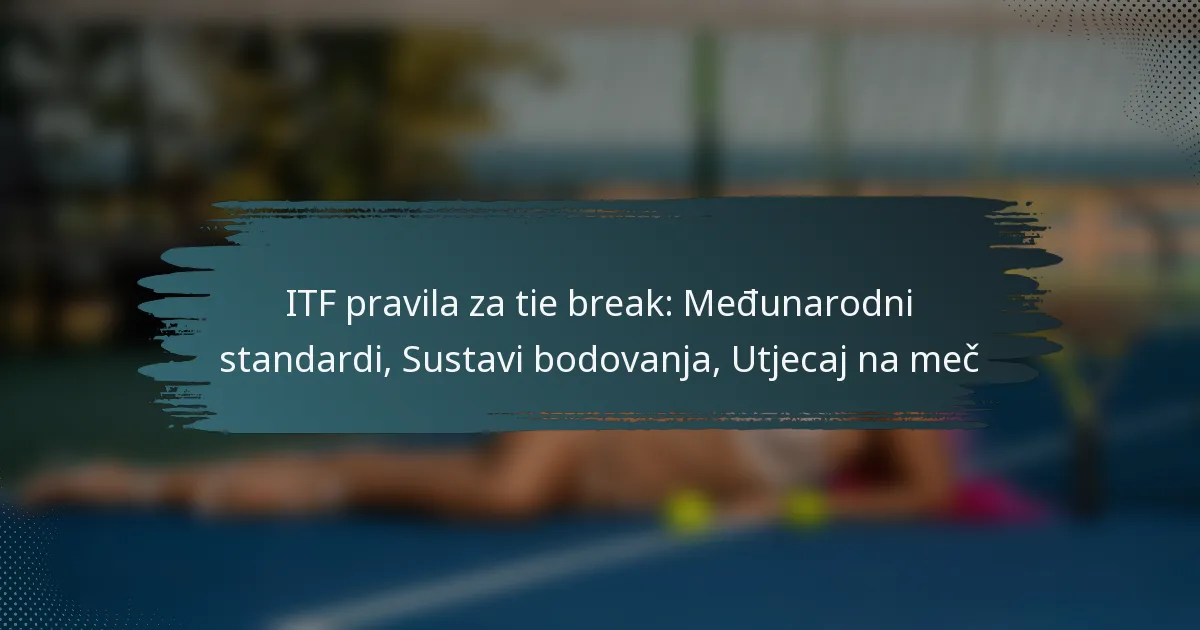 ITF pravila za tie break su standardizirani propisi koji reguliraju kako se tie breakovi provode u teniskim mečevima. Ova pravila osiguravaju pravednost i dosljednost u raznim turnirima, značajno utječući na ishode mečeva.