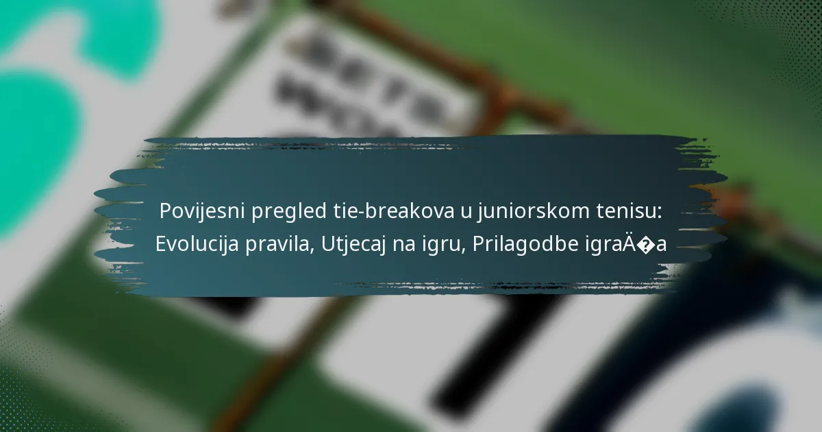Pravila za tie break u tenisu značajno su se razvijala tijekom godina kako bi se poboljšala pravednost i uzbuđenje igre. Ove promjene potaknule su razne organizacije i povratne informacije igrača, utječući na način na koji se mečevi igraju i završavaju.